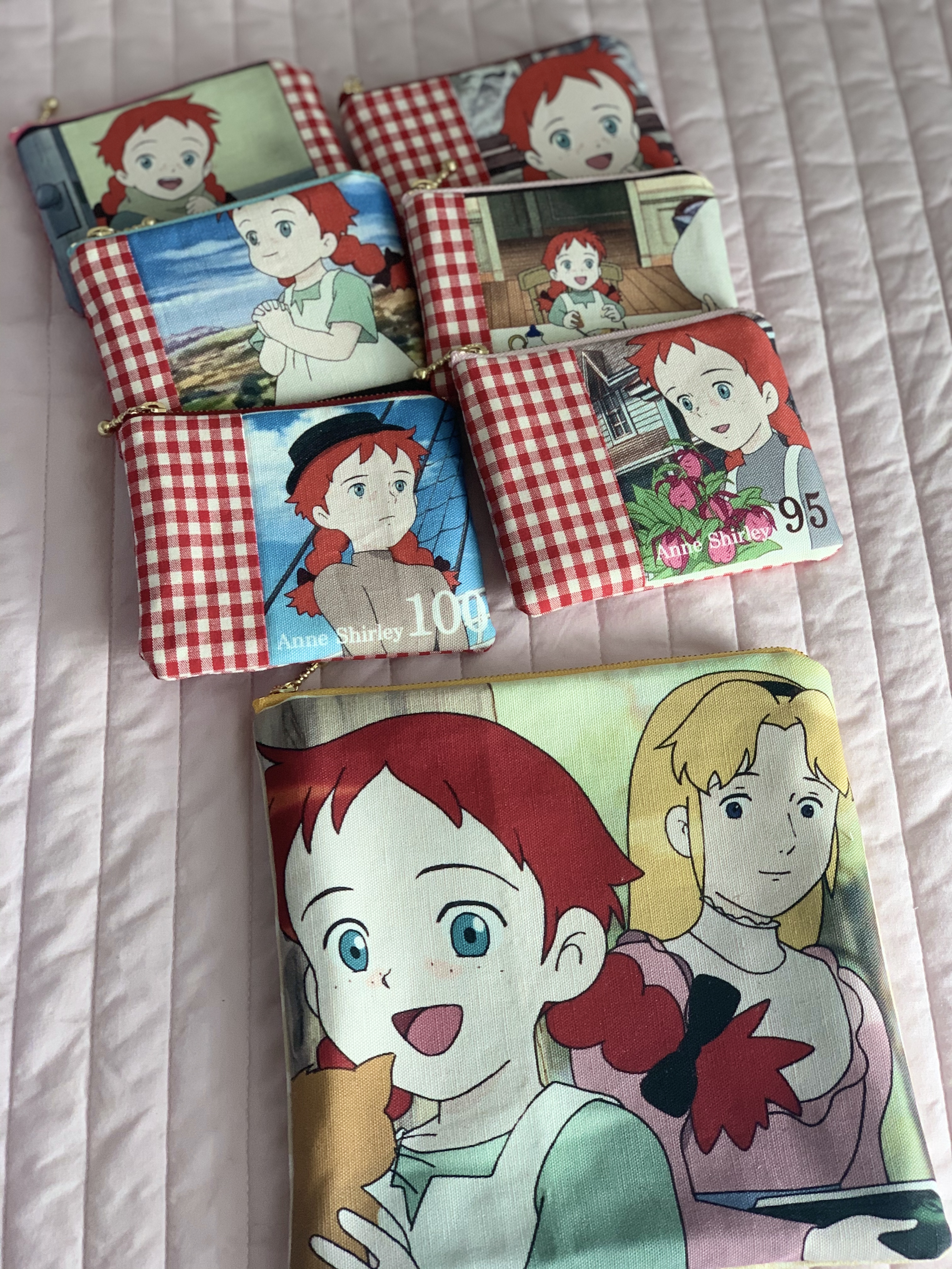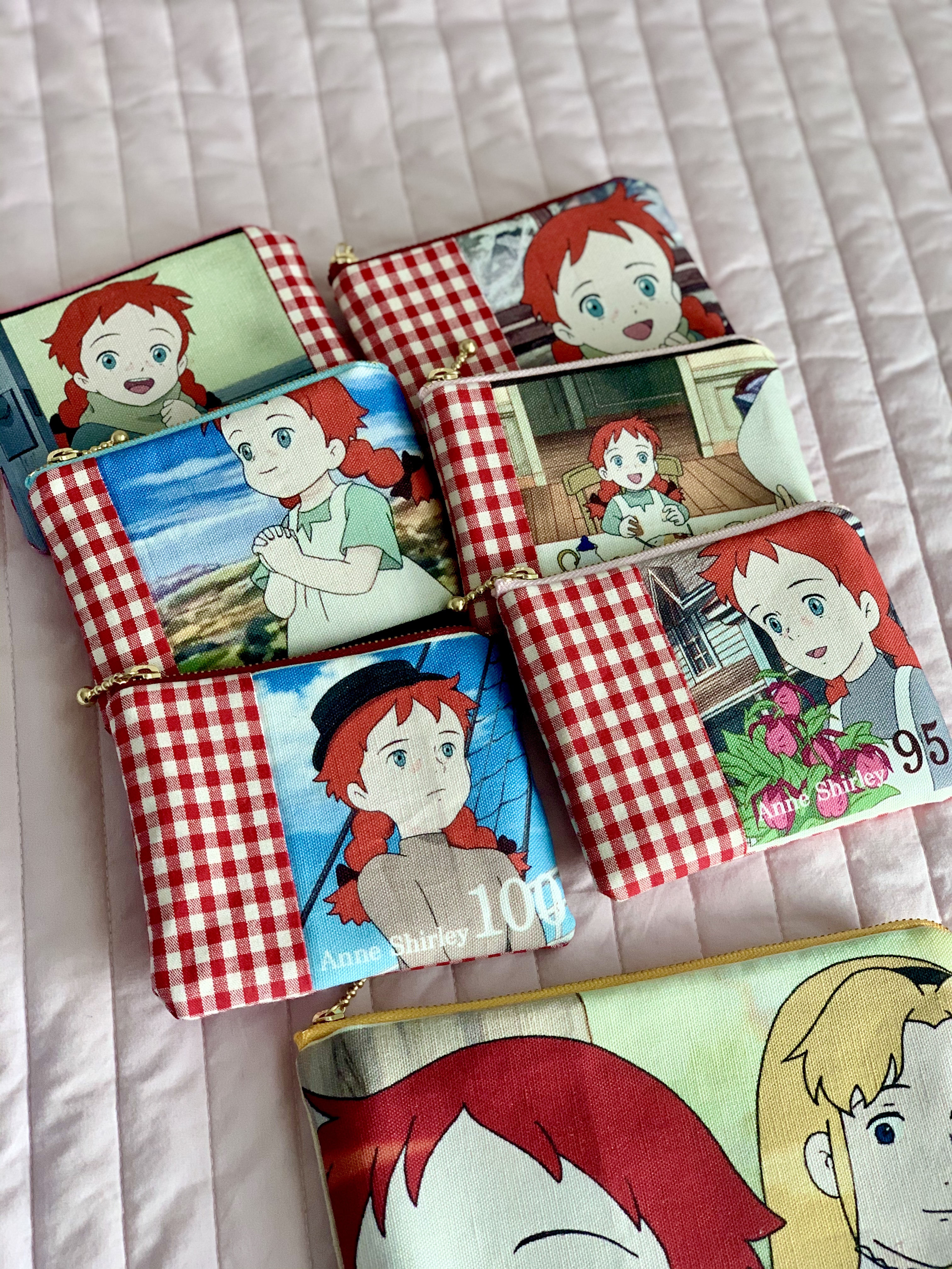 칸막이를 넣은 카드 파우치들입니다. 오랜만에 빨강머리앤을로 만들었어요. 빨강 체크 원단과 잘 어울리는 앤입니다.